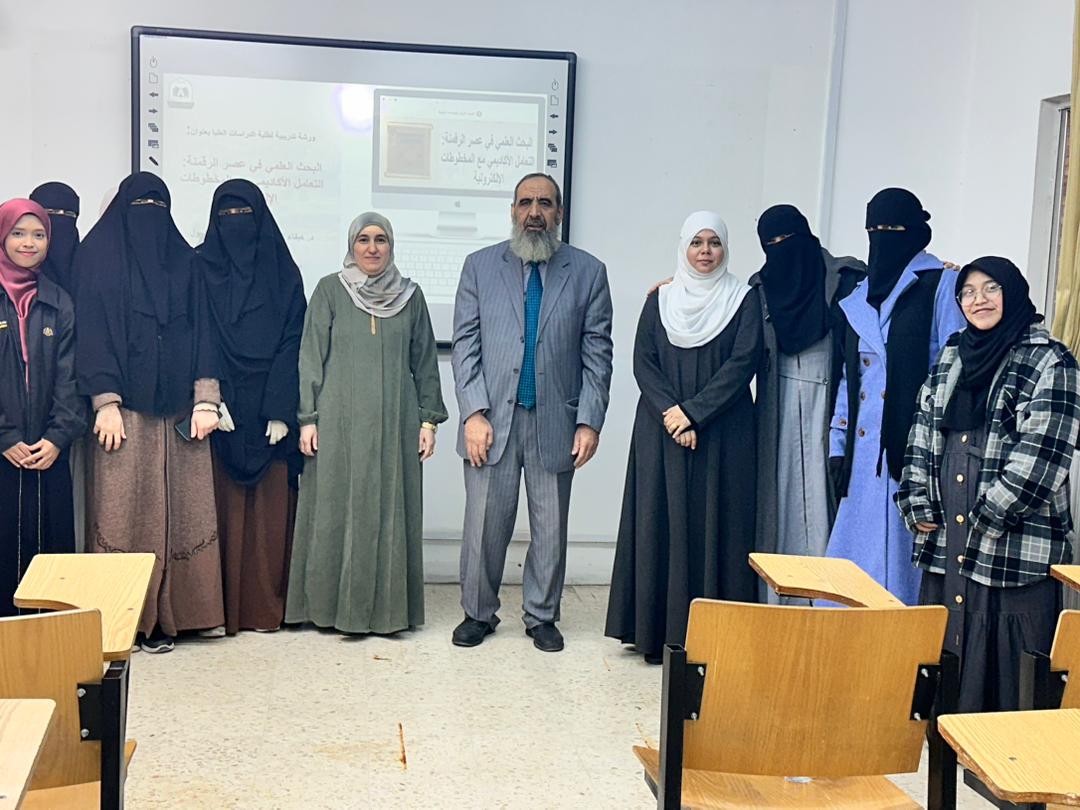 السوسنة - في إطار حرصها على تعزيز مهارات البحث العلمي لدى طلبة الدراسات العليا ومواكبة التحولات المعرفية في عصر الرقمنة، نظّمت كلية الشريعة والدراسات الإسلامية يوم الاثنين الموافق 15/12/2025 ورشة تدريبية بعنوان: