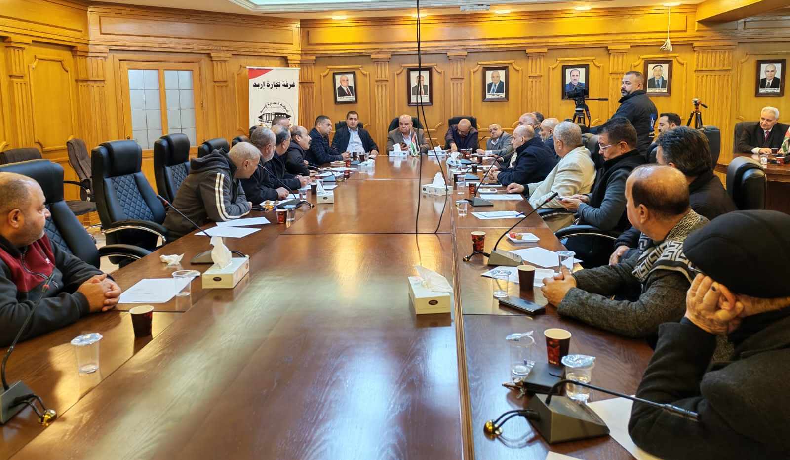 وضم الاجتماع رئيس غرفة التجارة محمد الشوحة، ومساعد رئيس لجنة بلدية إربد للشؤون الهندسية المهندس منيف خريس، وأعضاء مجلس إدارة الغرفة زيد شقيرات، وأيمن الغزاوي، ووسيم المسعد، إلى جانب جمع من تجار الحسبة المتضررين.