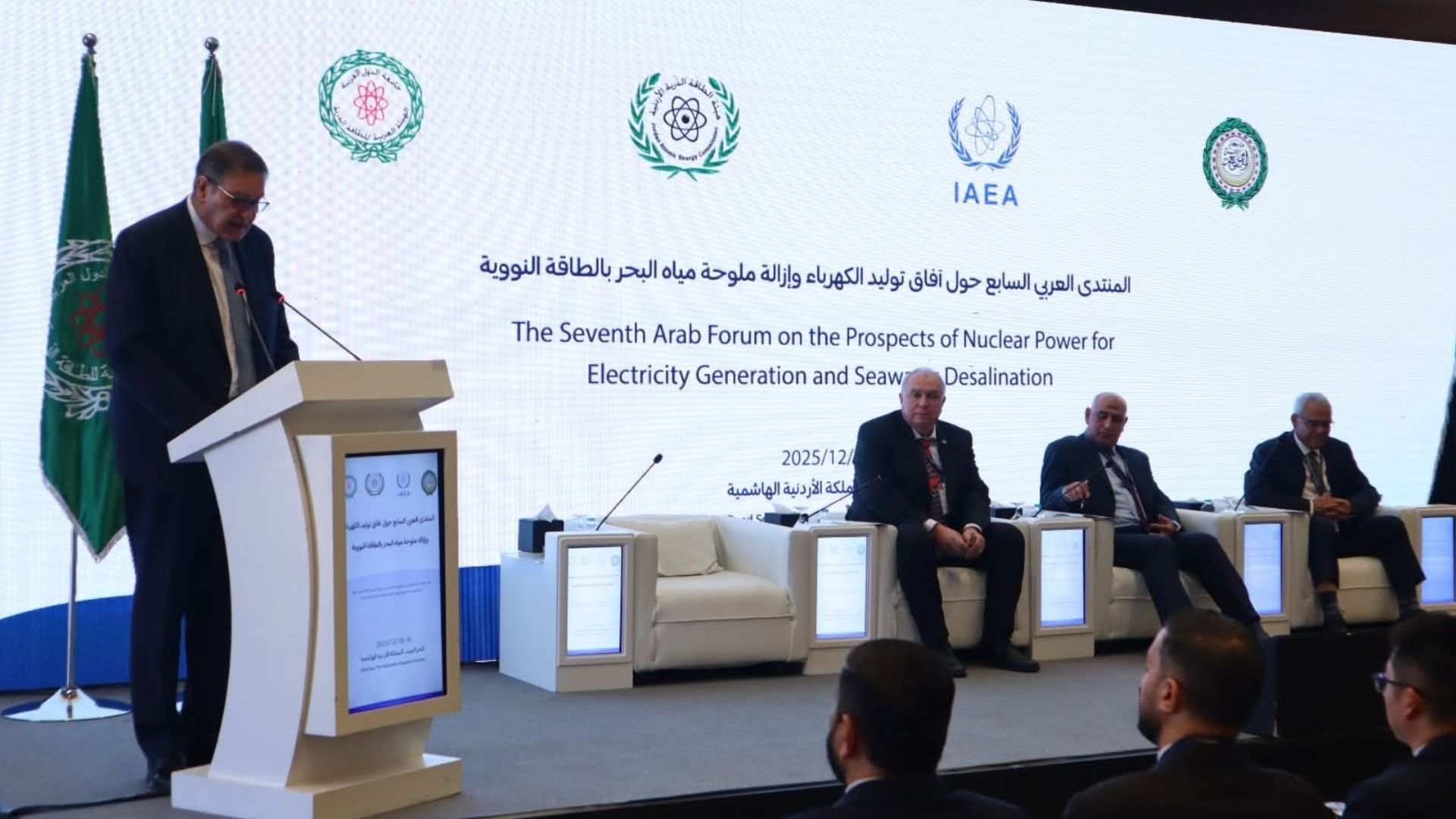 السوسنة - اختتمت هيئة الطاقة الذرية الأردنية والهيئة العربية للطاقة الذرية، "المنتدى العربي السابع حول آفاق توليد الكهرباء وإزالة ملوحة مياه البحر بالطاقة النووية " الذي نظمته بالتعاون مع الوكالة الدولية للطاقة الذرية والمجلس الوزاري العربي للكهرباء بجامعة الدول العربية.