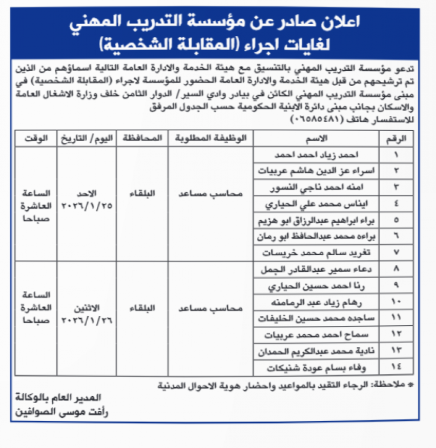 مدعوون لمقابلات شخصية لغايات التعيين .. أسماء