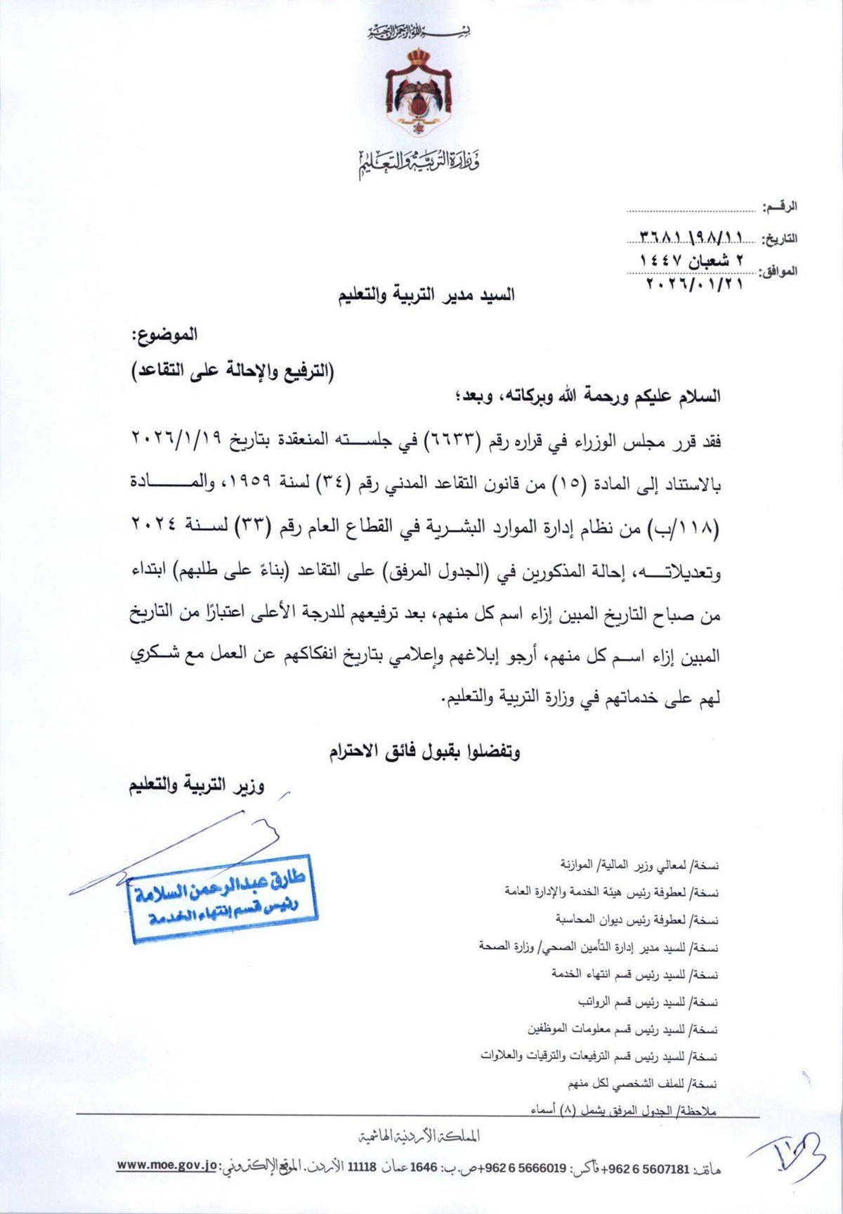 إحالات إلى التقاعد في وزارة التربية .. أسماء