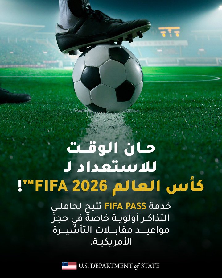 وأوضحت الخارجية الأميركية أن المشجعين الذين قاموا بشراء تذاكرهم مباشرة من الاتحاد الدولي لكرة القدم (فيفا)، يمكنهم التسجيل في خدمة “FIFA PASS” عبر الموقع الرسمي لفيفا، وهي خدمة مخصصة لتنظيم دخول الجماهير وتسهيل الإجراءات اللوجستية المرتبطة بالسفر وحضور المباريات داخل الولايات المتحدة.