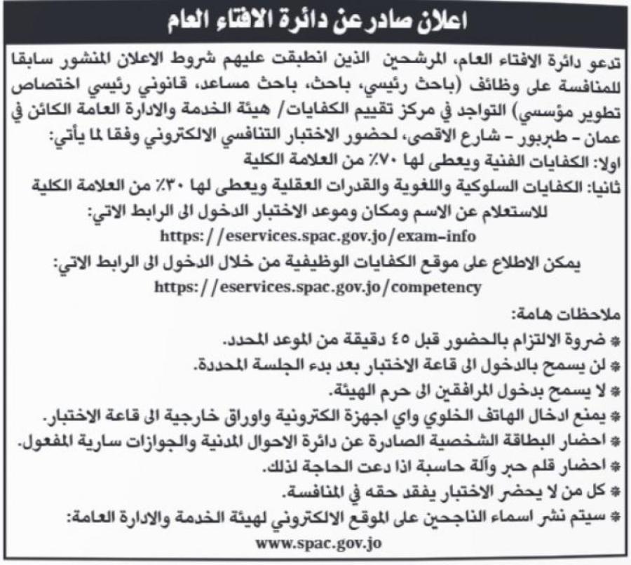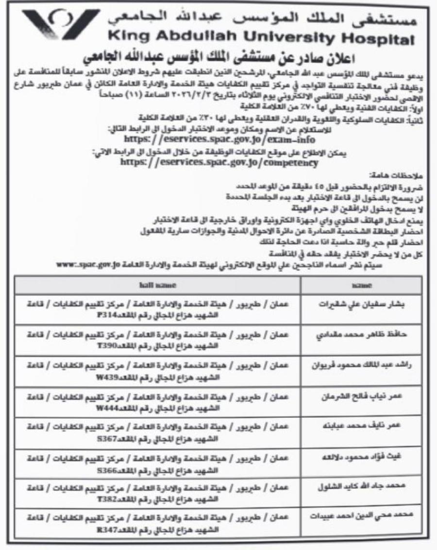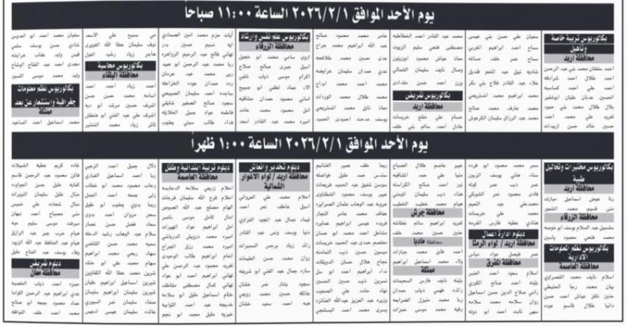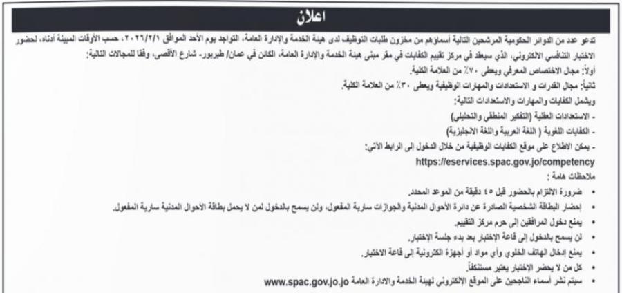 دعت وزارات ومؤسسات حكومية الخميس، اشخاصاً انطبقت عليهم شروط وظائف اعلنتها مسبقا، لحضور الامتحان التنافسي على هذه الوظائف.