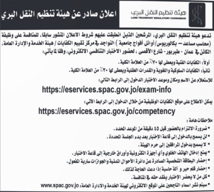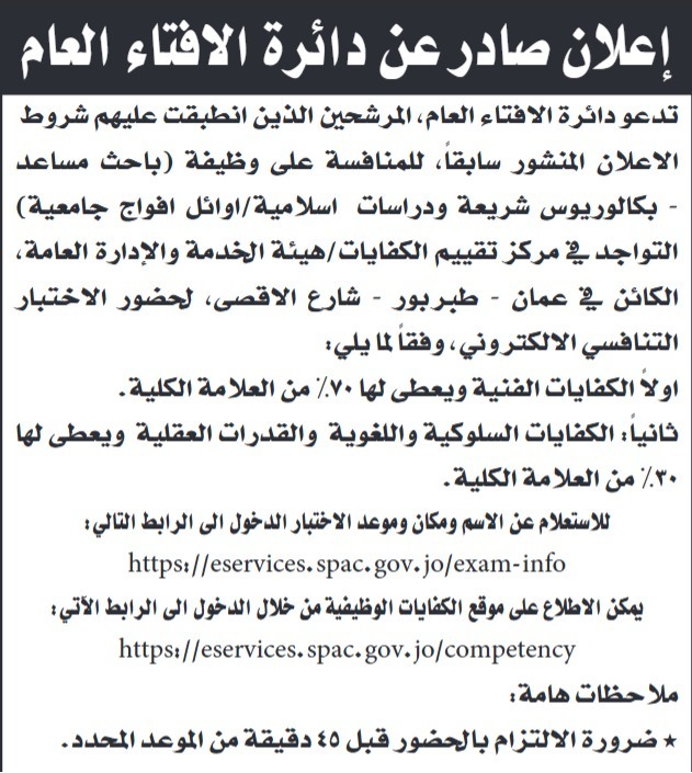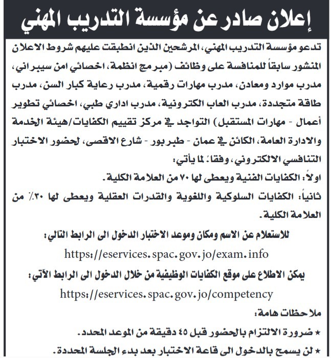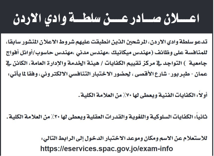 دعت جهات حكومية، الاربعاء المرشحين الذين انطبقت عليهم شروط الاعلان المنشور سابقا للامتحان التنافسي.