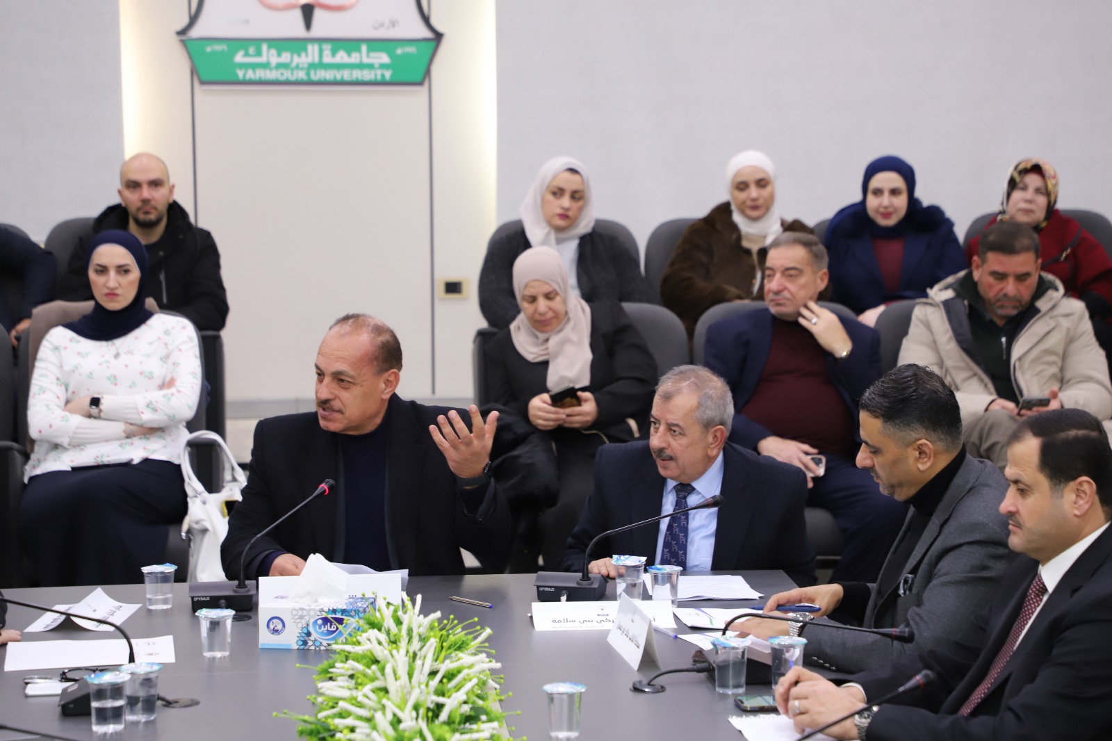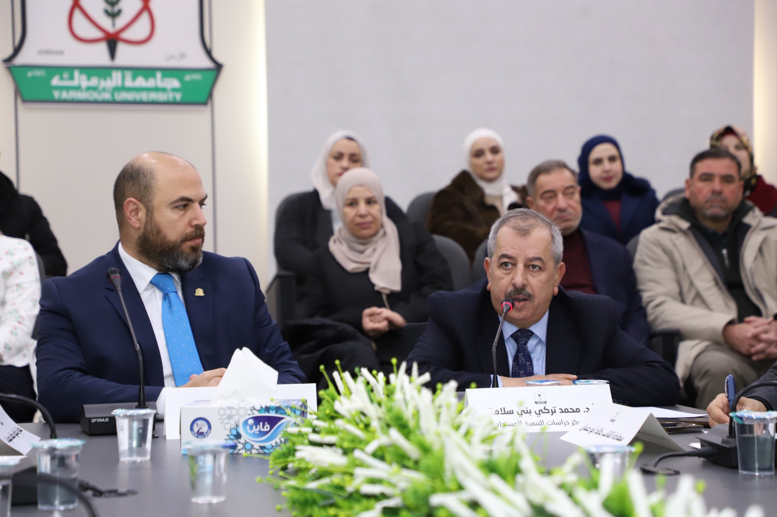 في إطار التركيز على سبل تحقيق التنمية الاقتصادية في محافظة إربد وإقليم الشمال، رعى رئيس جامعة اليرموك الأستاذ الدكتور مالك الشرايري، الفعالية الحوارية، لمناقشة ورقة السياسات العامة بعنوان "من التمركز إلى التوازن: إربد كنموذج للعاصمة الاقتصادي في شمال الأردن»، التي أعدها مركز دراسات التنمية المستدامة بالتعاون مع غرفة صناعة إربد.