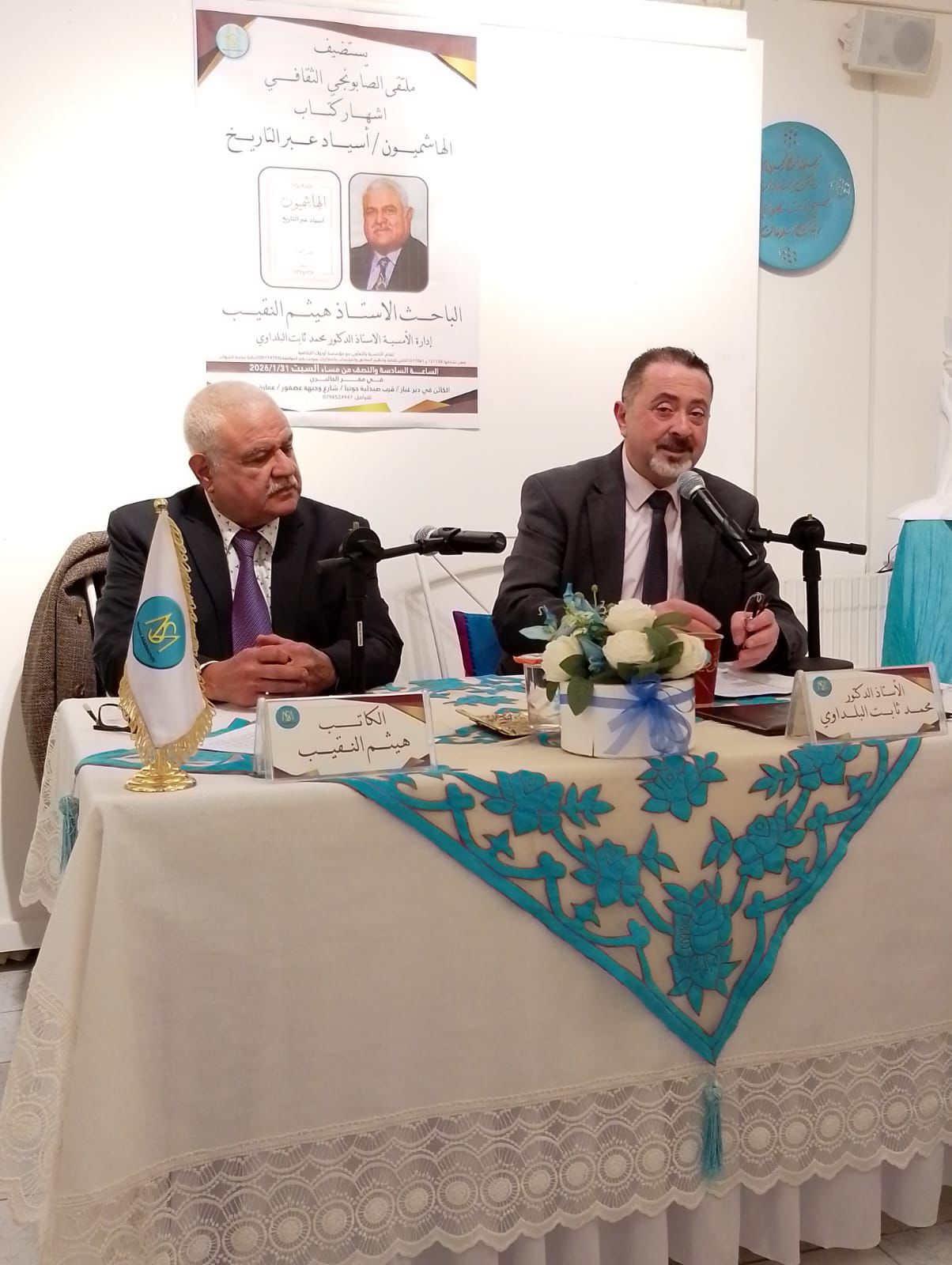 ضمن الفعاليات الثقافية التي ينظمها الملتقى، بهدف تعزيز الوعي التاريخي والادبي والفني، نظم ملتقى الصابونجي الثقافي، يوم السبت، حفل إشهار كتاب «الهاشميون… أسياد عبر التاريخ» للباحث الأستاذ هيثم النقيب، المقيم في كندا، بحضور نخبة من المثقفين والباحثين والمهتمين بالشأنين التوثيقي والتاريخي.