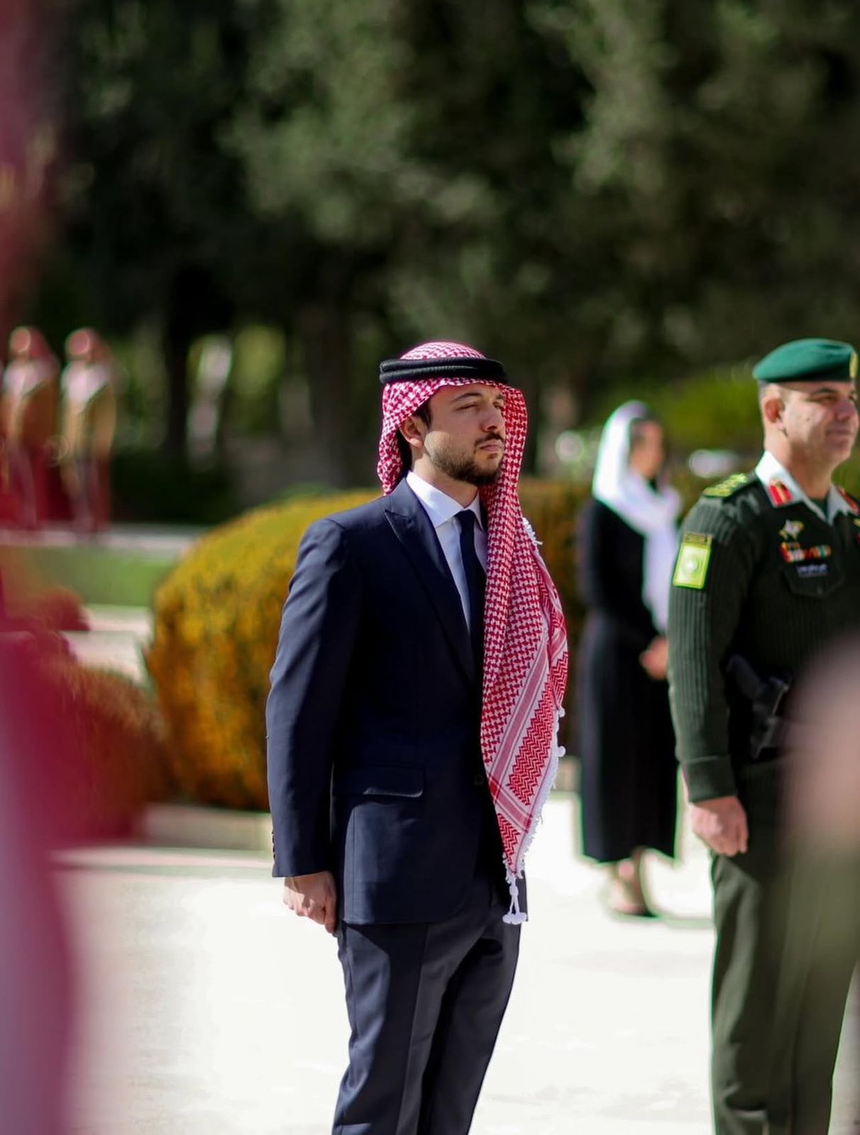 ولدى وصول سمو ولي العهد، استعرض سموه حرس الشرف الذي اصطف لتحيته، وعزف الصداحون لحن الرجوع الأخير.