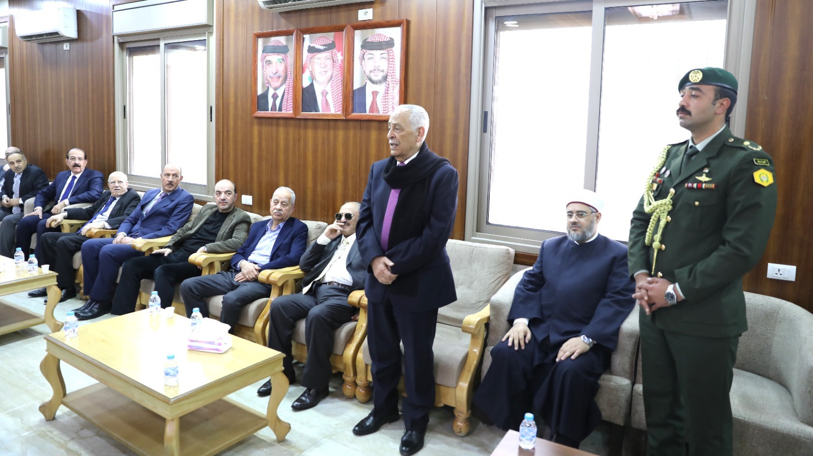 السوسنة - مندوبا عن جلالة الملك عبدالله الثاني وسمو الأمير الحسين بن عبدالله الثاني، ولي العهد، قدم رئيس الديوان الملكي الهاشمي يوسف حسن العيسوي، اليوم الثلاثاء، واجب العزاء إلى عشائر بينو والمساعدة والمصري والخريسات.