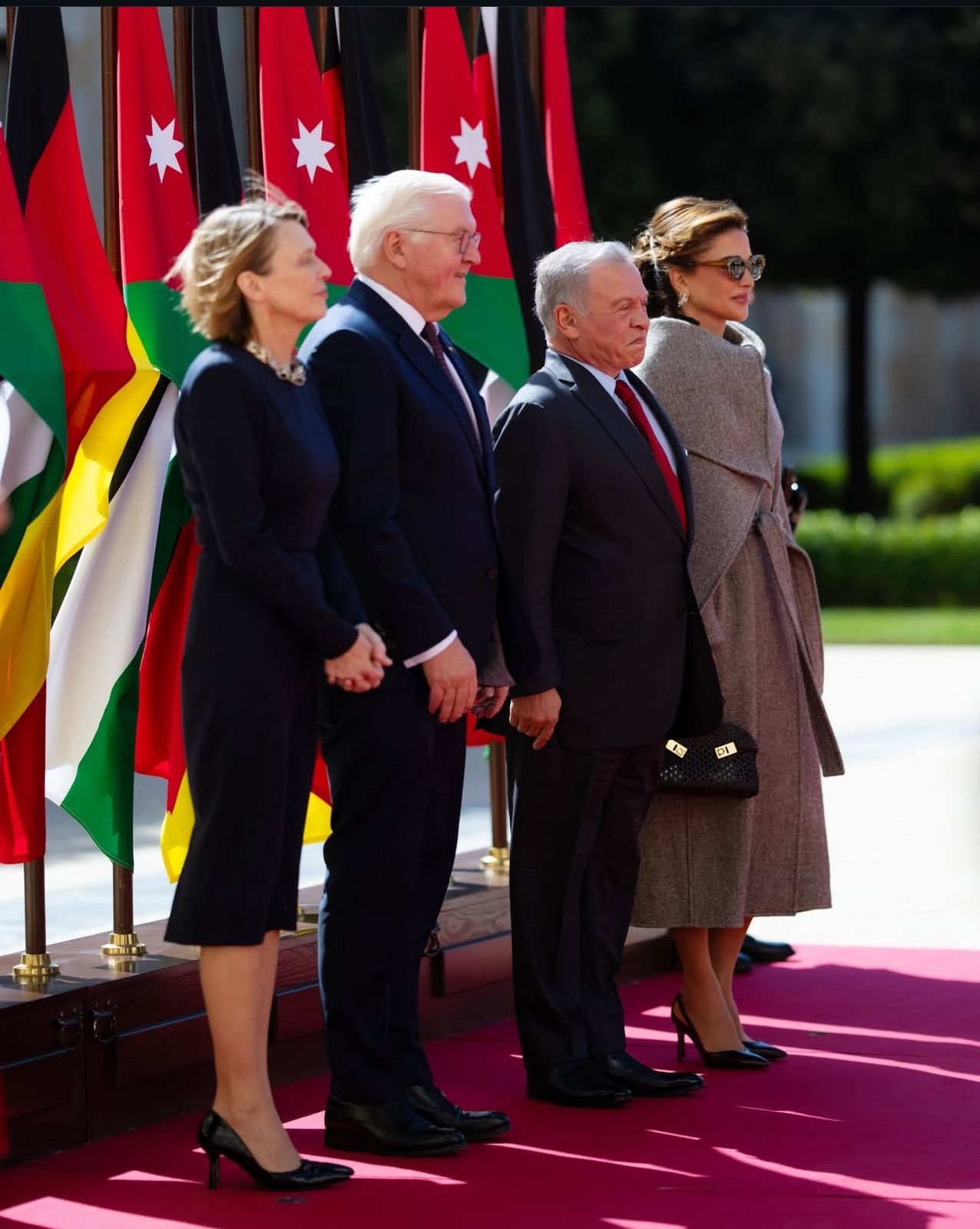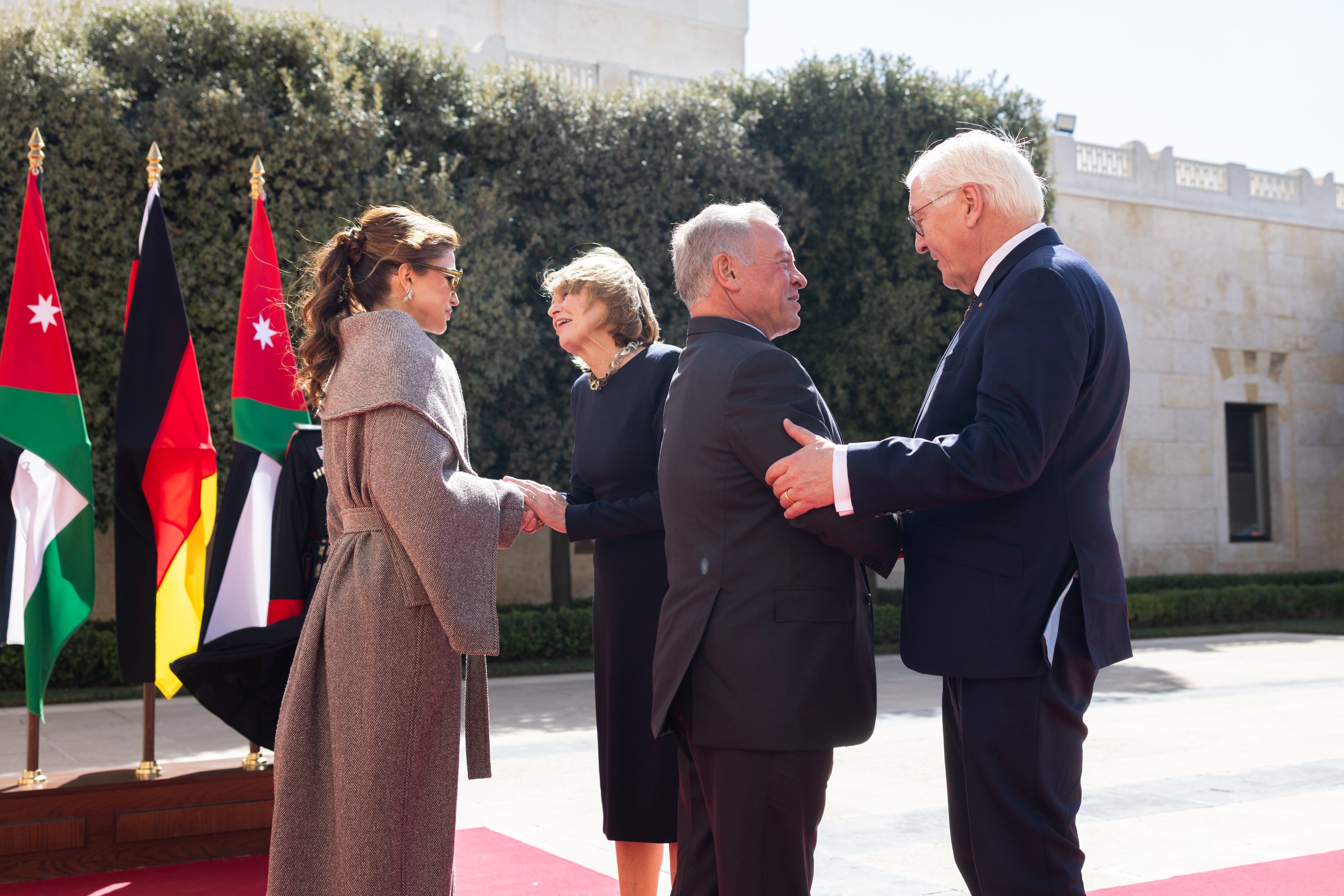 وخلال مباحثات حضرتها جلالة الملكة رانيا العبدﷲ والسيدة الأولى إلكه بودنبندر وسمو الأمير الحسين بن عبدﷲ الثاني ولي العهد، رحب جلالة الملك بالرئيس الألماني، لافتا إلى أن هذه الزيارة فرصة لتبادل الآراء المهمة حول مستجدات المنطقة.