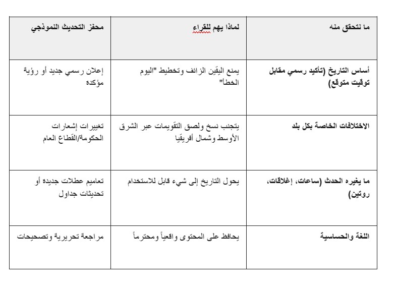 ومع الإطلاق، أضفنا قسماً مخصصاً للفعاليات العربية، يجمع الشعائر الدينية والتواريخ العامة الرئيسية، ثم يوضح ما تعنيه وما تغيره في الحياة اليومية.