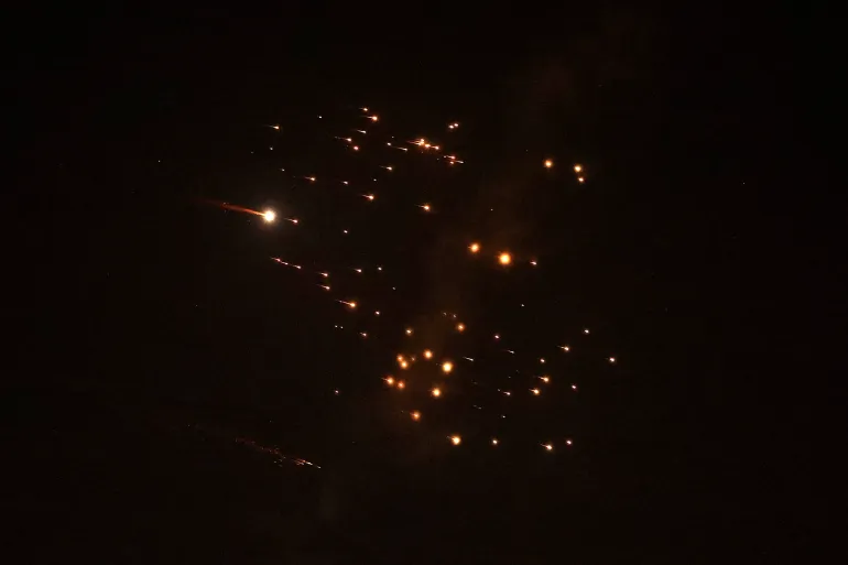 ووثّقت مقاطع فيديو -نقلتها القناة 12 الإسرائيلية ومنصات محلية- لحظة سقوط الصاروخ الإيراني، حيث انشطر إلى عدد كبير من القنابل، ومن ثم انفجر على شكل وميض ضخم.