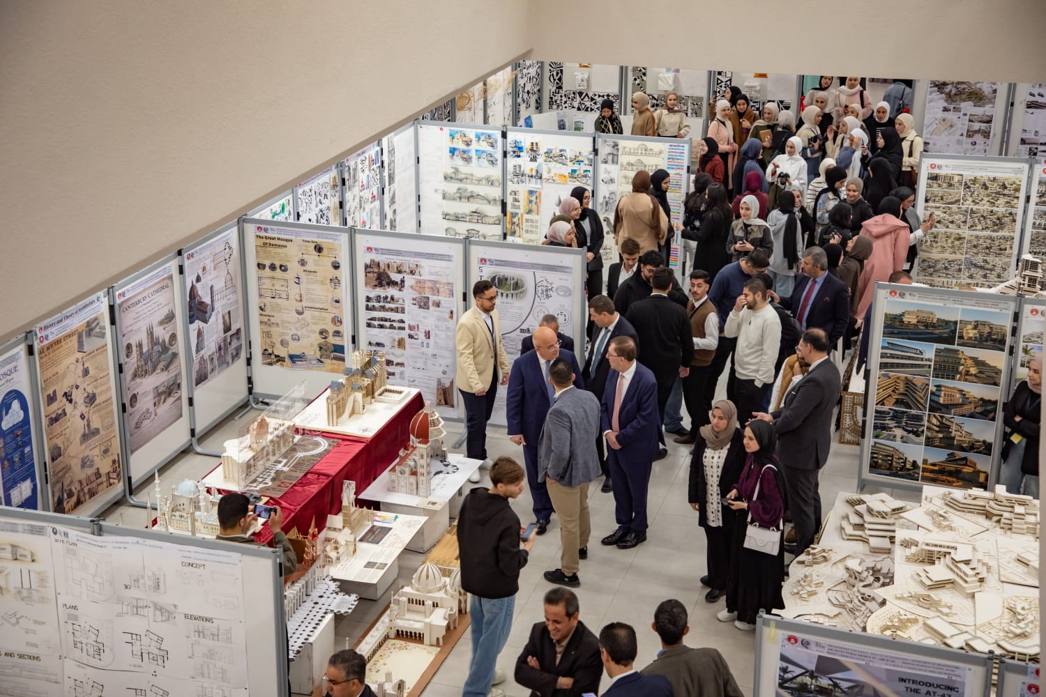 واشتمل المعرض الذي نظمه قسم هندسة العمارة في كلية الهندسة بالتعاون مع الفرع الطلابي لمعهد طلبة العمارة الأمريكي (AIAS)، على مجموعة واسعة من مشاريع الطلبة التي أنجزت خلال سنوات دراستهم من السنة الأولى وحتى السنة الخامسة، حيث عرض الطلبة والخريجون المجسمات المعمارية واللوحات والأعمال الإبداعية التي تعكس مهاراتهم في التصميم المعماري والإظهار الفني، وفق معايير الاعتماد الدولي (NAAB) الذي حصل عليه القسم، ويؤكد جودة مخرجاته الأكاديمية.
