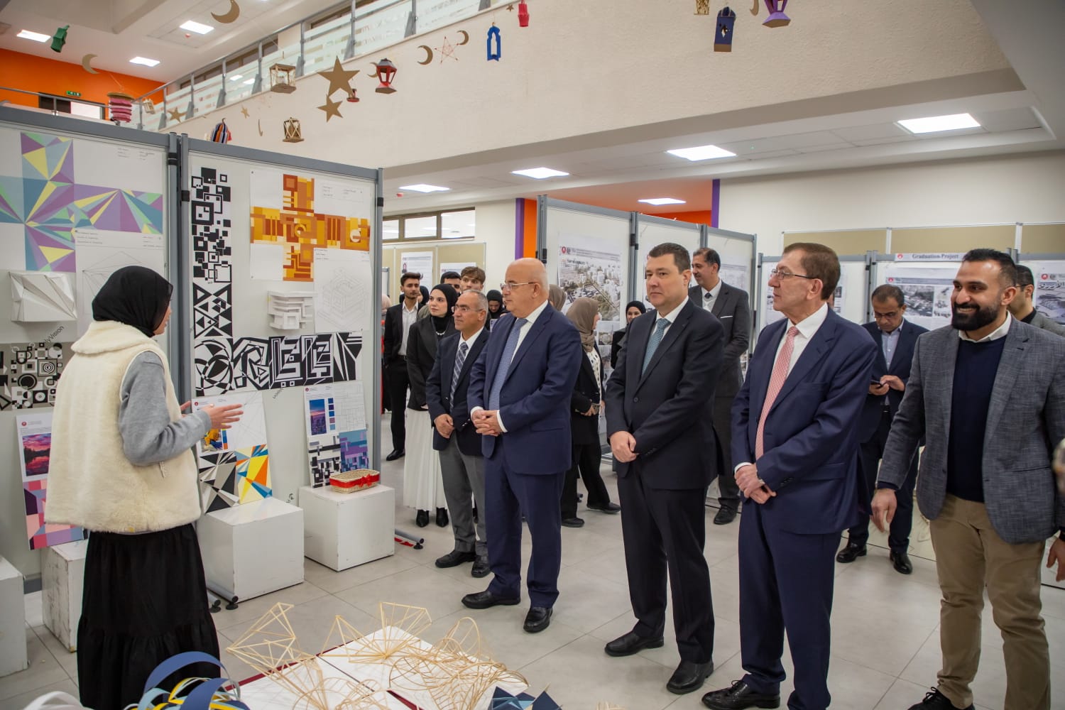 وحضر افتتاح المعرض نائبا رئيس الجامعة الأستاذ الدكتور حسن كتخدا والأستاذ الدكتور صادق الشديفات، وعميد كلية الهندسة الأستاذ الدكتور عدنان مقطش، ونواب العميد، ورئيس قسم هندسة العمارة الدكتور يحيى قطيشات، إلى جانب أعضاء الهيئة التدريسية وطلبة القسم.