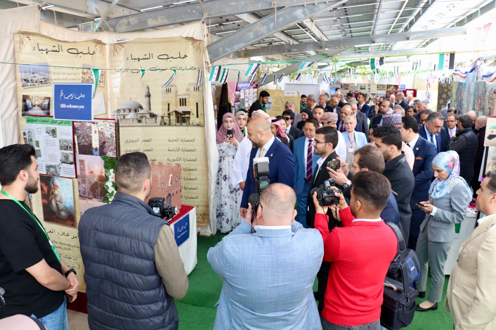 وانطلقت الفعاليات بمسيرة للأعلام حملها الطلبة الدوليون من أمام مبنى المؤتمرات وصولاً إلى موقع المعرض أمام عمادة شؤون الطلبة، في مشهد يعكس اعتزازهم بهوياتهم الوطنية وانتمائهم لأسرة اليرموك.