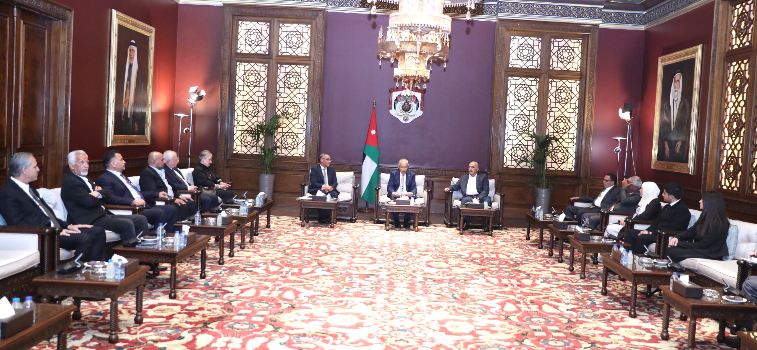 استقبل رئيس الديوان الملكي الهاشمي، يوسف حسن العيسوي، الثلاثاء وفدين، ضمّ الأول الهيئة الإدارية لجمعية مركز بحوث ومشاريع التنمية المستدامة (SDA) فيما مثّل الثاني فرقة شباب معان للتراث الشعبي، وذلك في لقاء عكس مساحة الحوار مع مختلف مكونات المجتمع.