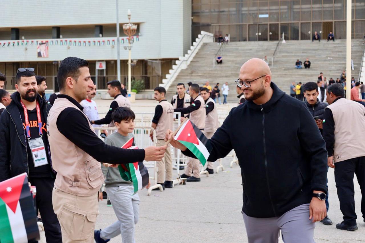نشامى أمن الملاعب يوزعون الأعلام في مباراة الحسين والرمثا .. صور