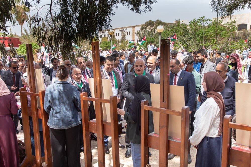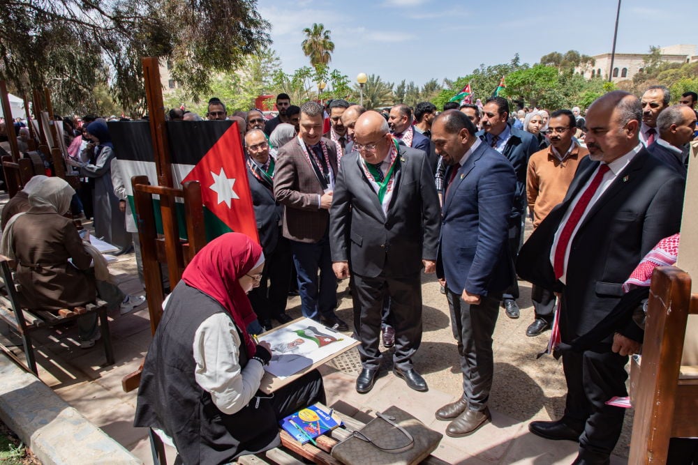 واستهلت الجامعة احتفالاتها بانطلاق مسيرة وطنية من امام مبنى الملك الحارث الرابع يتقدمها رئيس الجامعة الأستاذ الدكتور خالد الحياري، ونواب الرئيس، وعمداء الكليات، إلى جانب حشد واسع من أعضاء الهيئتين الأكاديمية والإدارية والطلبة، وصولًا إلى سارية العلم في قلب الجامعة، حيث ارتفعت الراية الأردنية شامخة على أنغام السلام الملكي، في مشهد وطني عكس رمزية العلم بوصفه عنوانًا للسيادة والكرامة وتاريخًا حافلًا بالتضحيات والإنجازات.