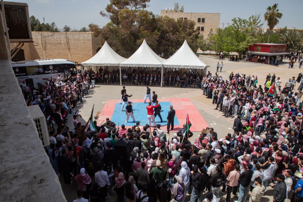 وشهدت الفعاليات ايضاً مشاركة مميزة من موسيقات الأمن العام، التي أضفت أجواءً وطنية حماسية، فيما ازدانت أروقة الجامعة بالأعلام الأردنية في لوحة جسدت وحدة الأردنيين وتلاحمهم، وعكست روح الانتماء الصادق للوطن.
