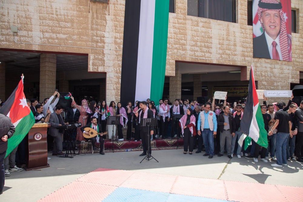 وتضمنت فعاليات الاحتفال برنامجًا وطنيًا متكاملًا أعدّته دائرة النشاط الثقافي والفني بعمادة شؤون الطلبة، اشتمل على أداء السلام الملكي ورفع العلم الأردني في موقع الاحتفال، ومشاركة مميزة لفرقة الجامعة وكورالها الذين قدّموا فقرات وطنية عبّرت عن روح الانتماء والاعتزاز بالهوية الوطنية، وأسهمت في إضفاء أجواء احتفالية مفعمة بالحماس.