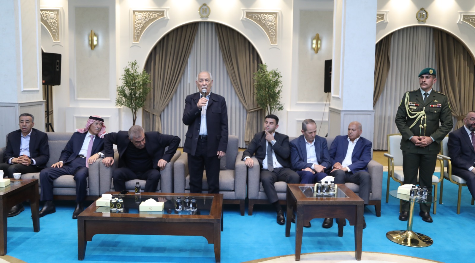 السوسنة - مندوبا عن جلالة الملك عبدالله الثاني وسمو الأمير الحسين بن عبدالله الثاني، ولي العهد، قدم رئيس الديوان الملكي الهاشمي يوسف حسن العيسوي، اليوم السبت، واجب العزاء إلى عشيرتي الحديد والشر،عة.