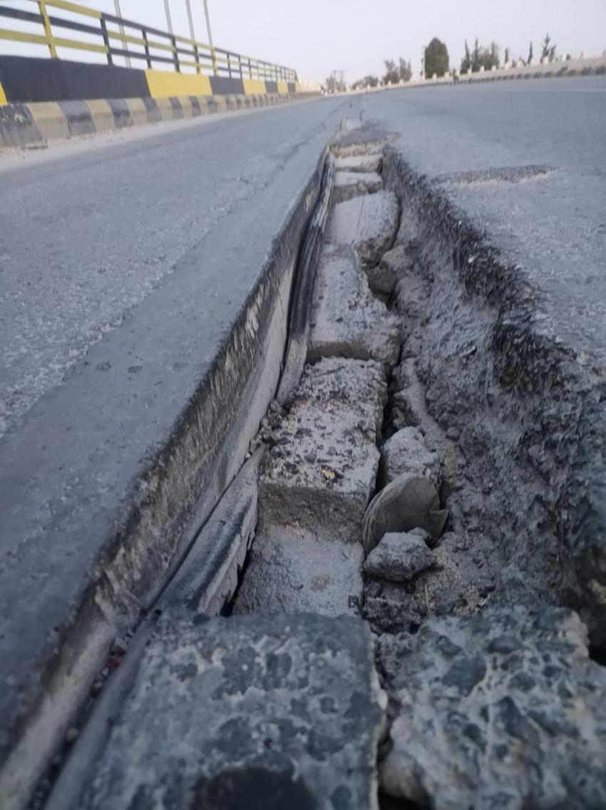 وأظهرت صور حدوث إنهيارات في اجزاء من الطريق، جراء التشققات الكبيرة فيه.