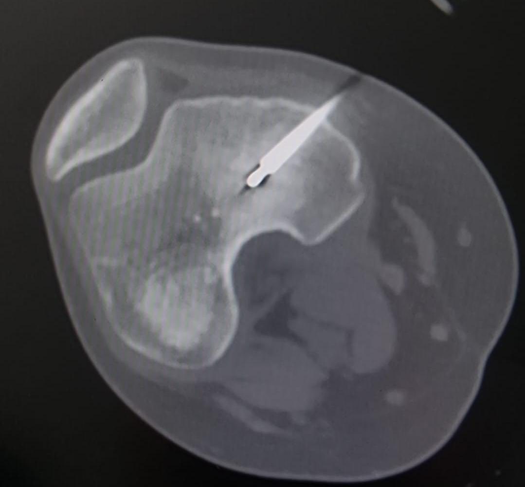 السوسنة - اجرى الكادر الطبي في مستشفى الأميرة بسمة عملية نوعية دقيقة لعلاج ورم عظمي حميد من نوع (Osteoid Osteoma) باستخدام تقنية الكي بالتردد الحراري (Radiofrequency Ablation) الموجهة بالأشعة المقطعية.