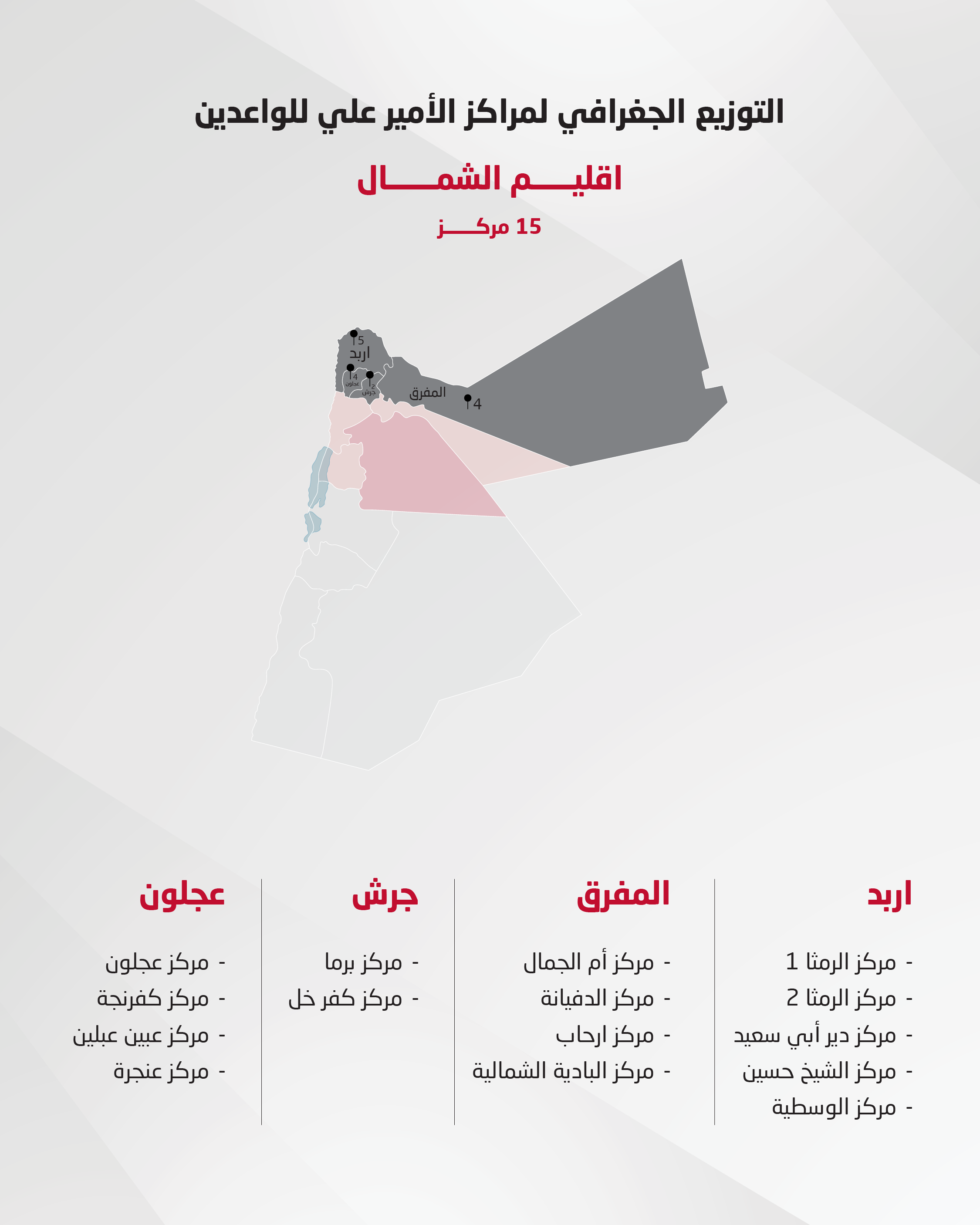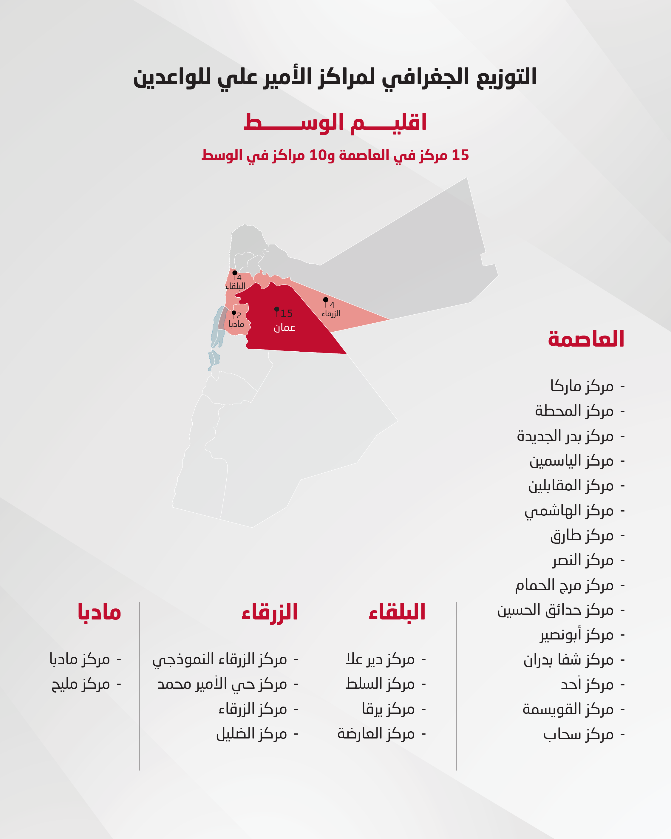 ويشمل المشروع ثمانية مراكز تدريبية للواعدات موزعة على عدد من المحافظات: عمّان، الزرقاء، إربد، عجلون، جرش، الكرك، والعقبة، بهدف توفير فرص تدريب متكافئة للاعبات الموهوبات.