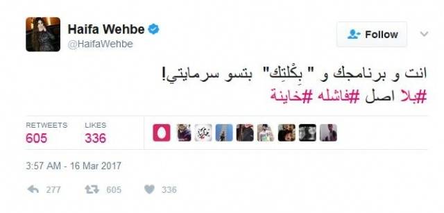 السوسنة - أثارت الفنانة اللبنانية هيفاء وهبي ضجة كبيرة على صفحتها على "تويتر" من خلال تغريدة جريئة.