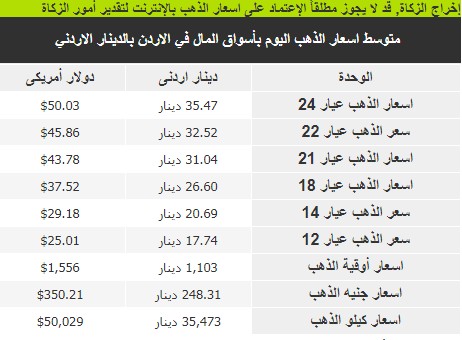 السوسنة - التقرير الدوري والمتجدد لاسعار معدن الذهب اليوم الاثنين في الأردن.